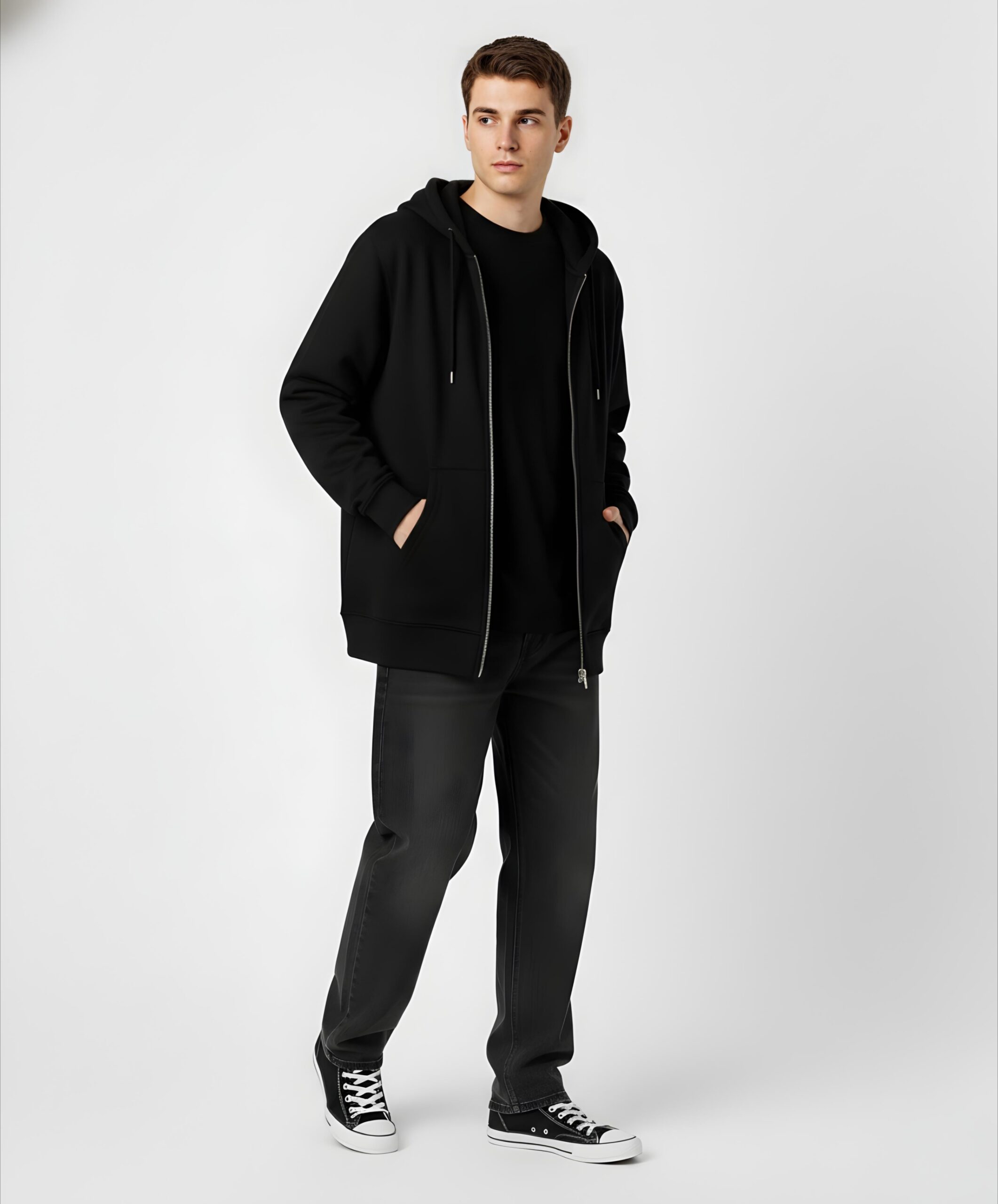Wear it during cool evenings, winter layering, or breezy nights out. The black zip hoodie adapts effortlessly across seasons, making it a long-term wardrobe essential.