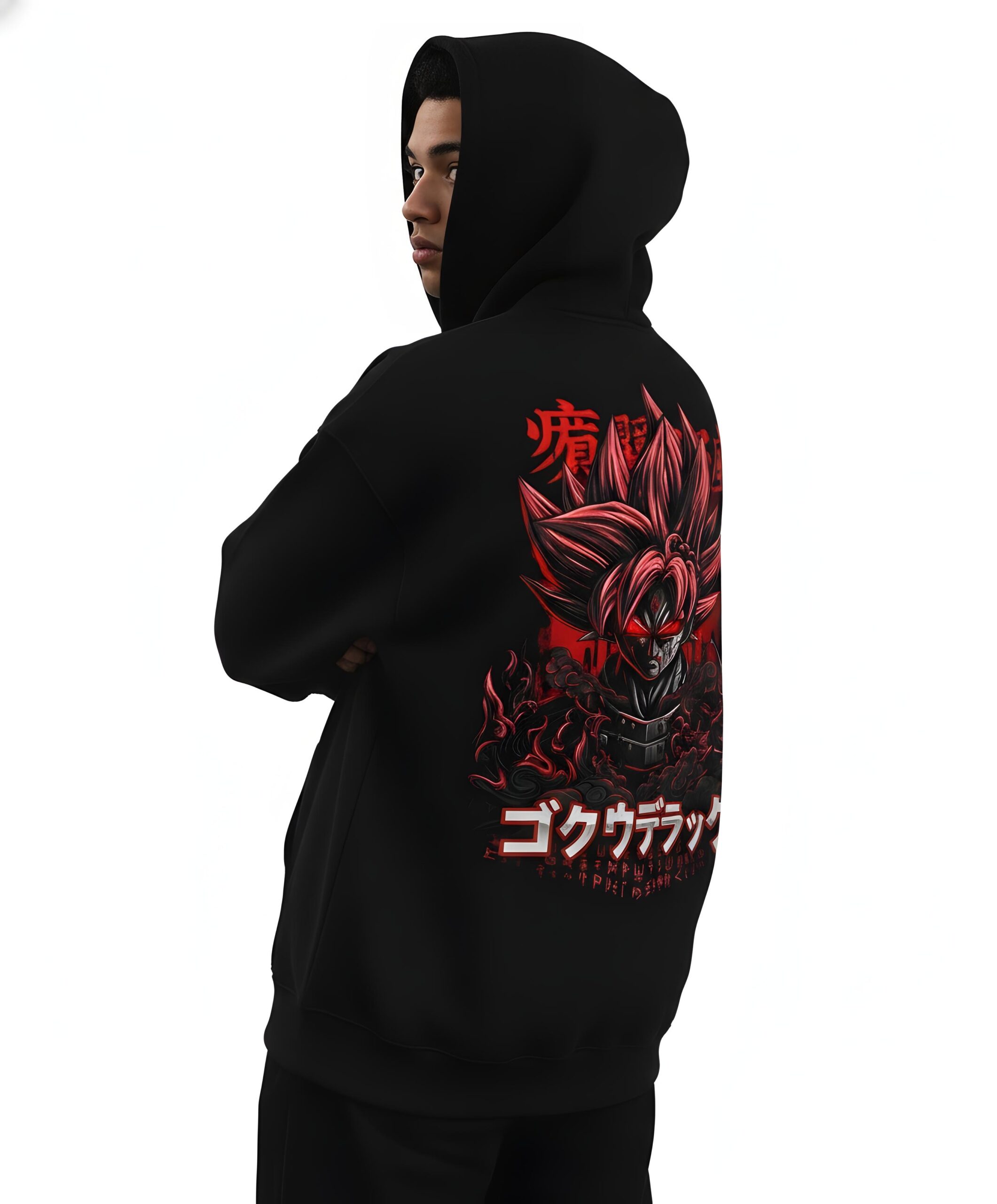 Black Oversized Anime Streetwear Hoodie – Goku Inspired Graphic | Yaveddra