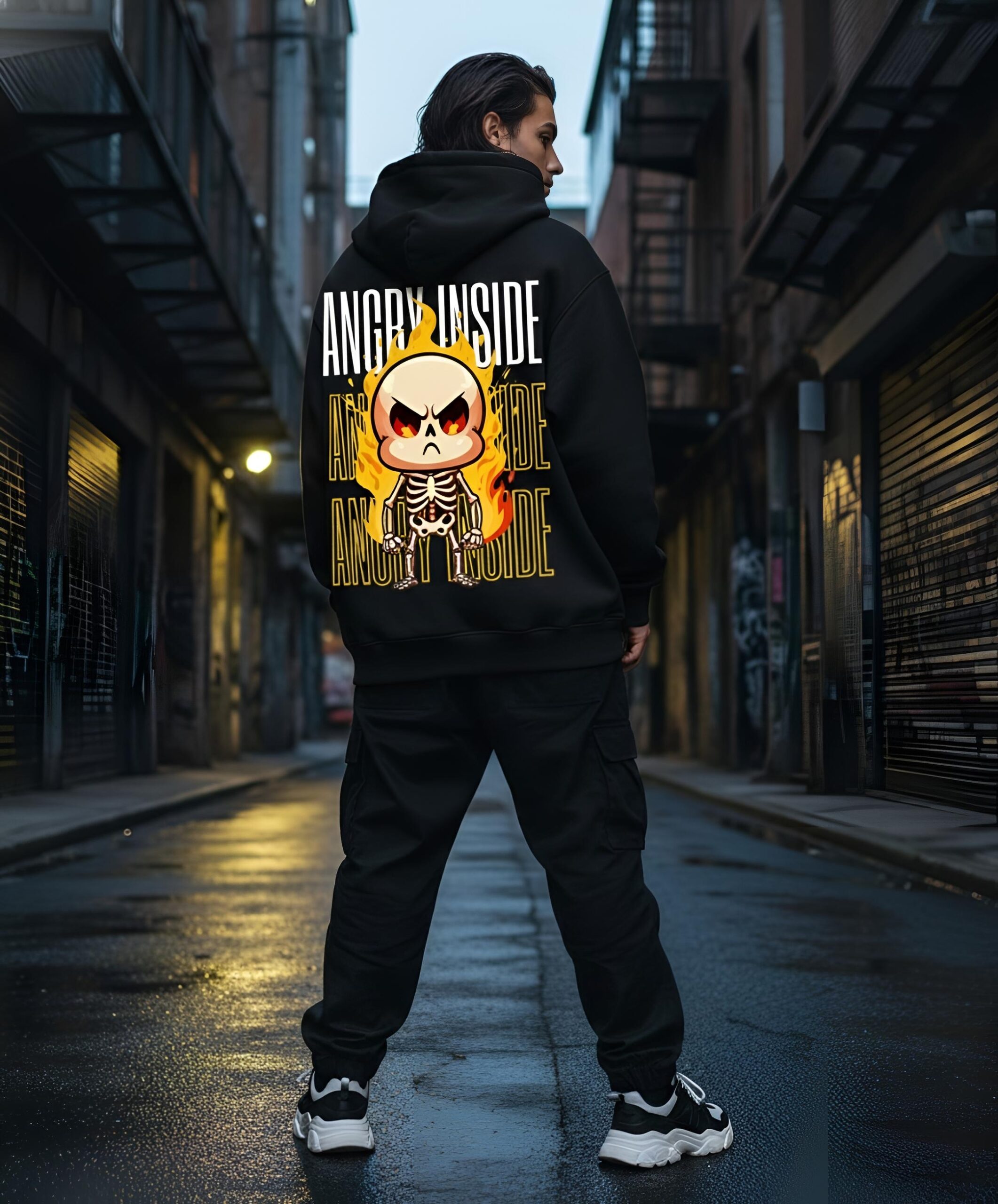 Angry Inside Oversized Graphic Hoodie in Black – Streetwear DTF Print | Yaveddra Angry Hoodie