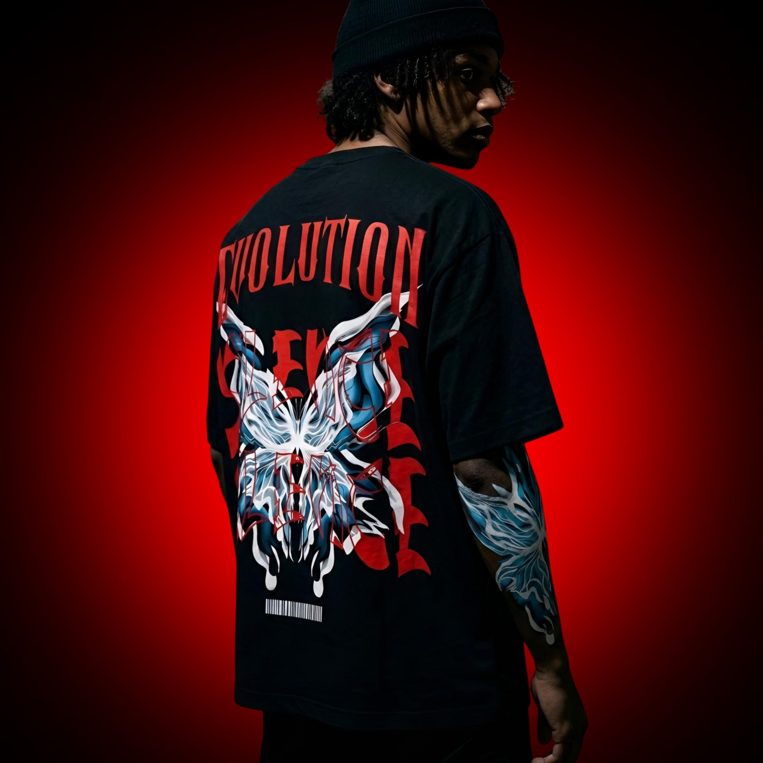 Premium oversized t shirt for men with butterfly graphic design. Made from 260 GSM cotton with high-quality DTF print, perfect for streetwear style and all-day comfort.