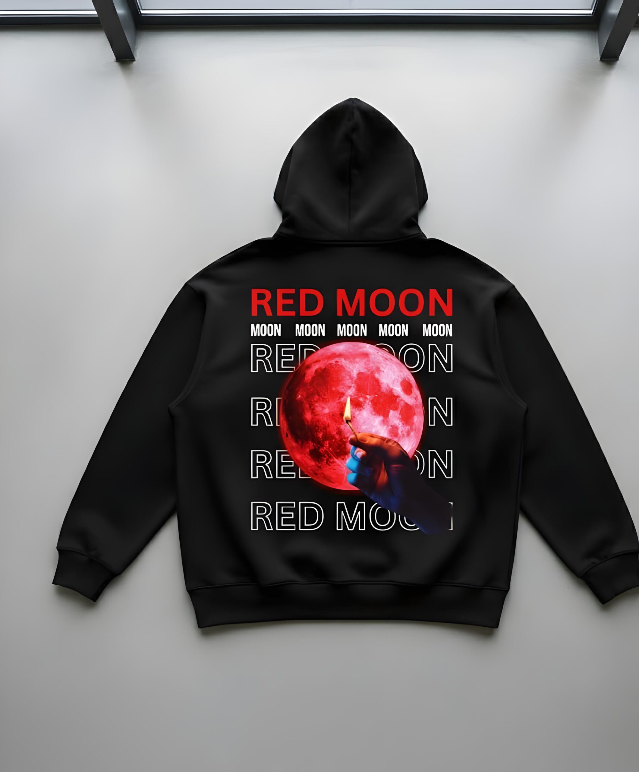 Red Moon Oversize Black Hoodie