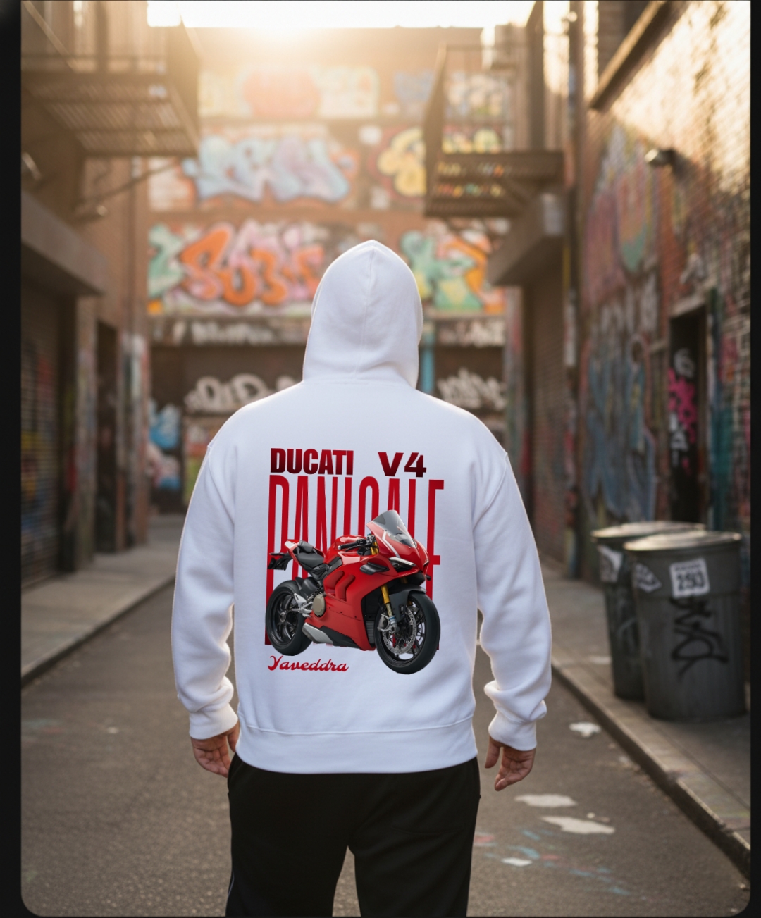 This hoodie symbolizes speed, passion, engineering excellence, and individuality — everything the Ducati Panigale V4 stands for.