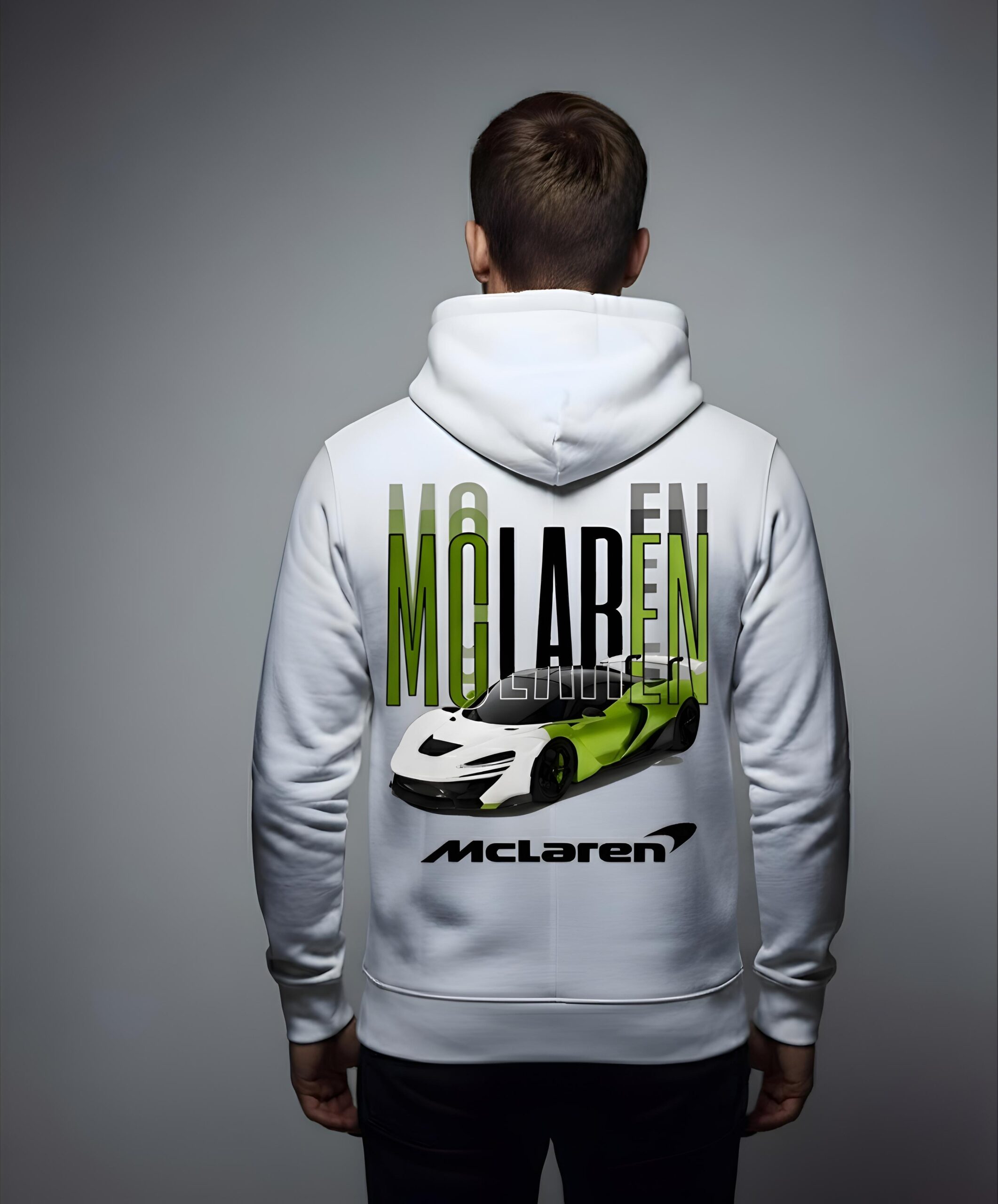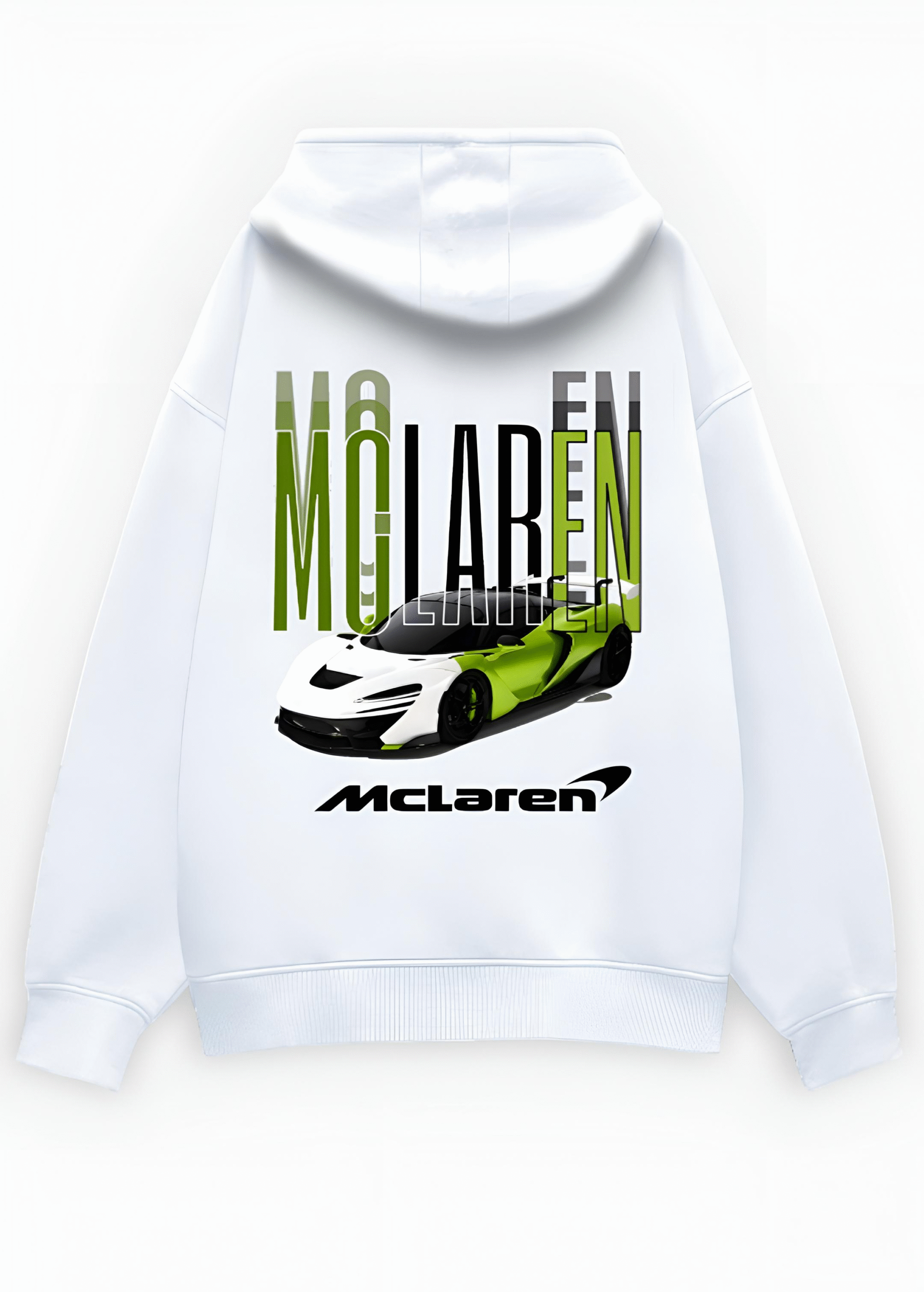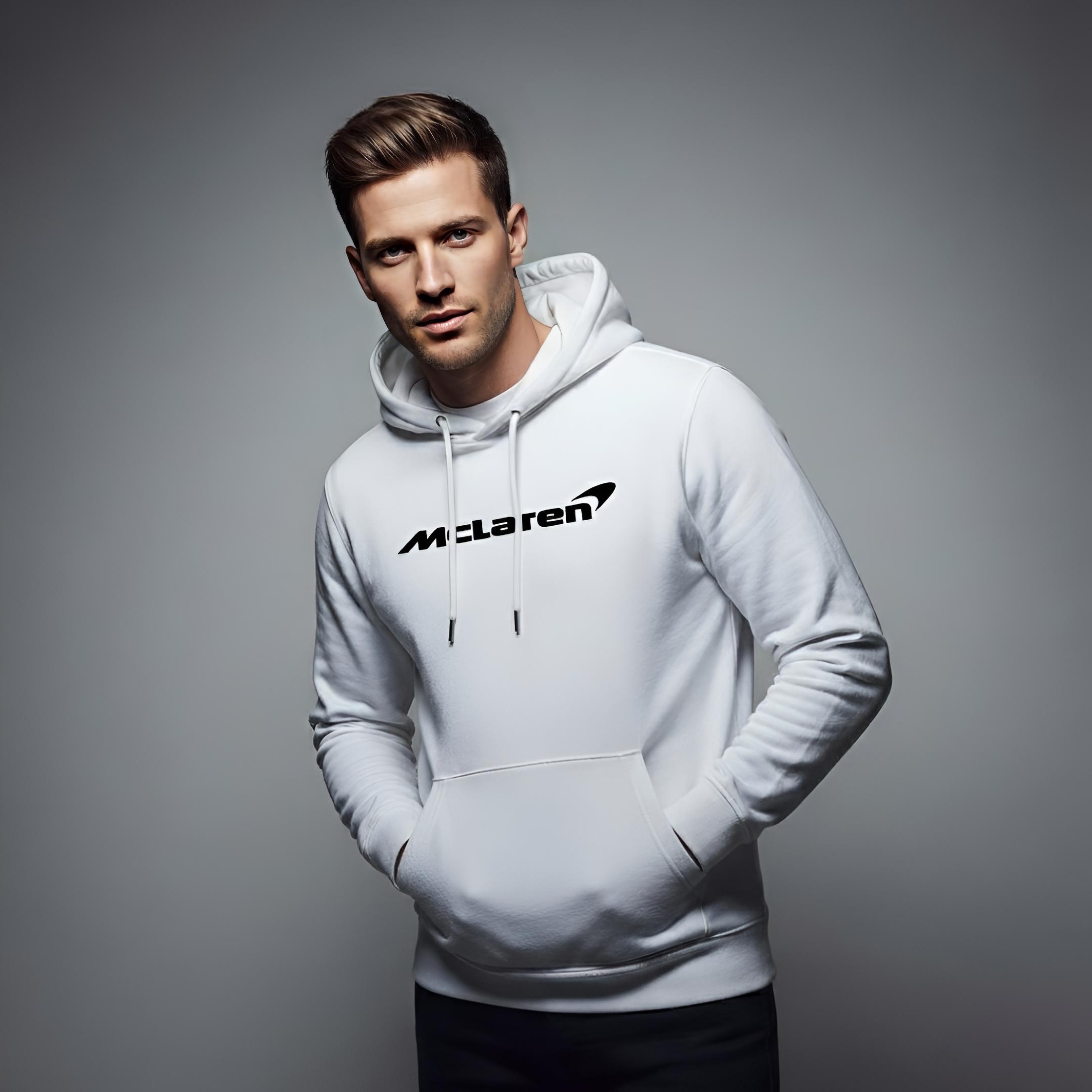 This luxury white oversized hoodie features the official McLaren logo on the front and an exclusive supercar graphic on the back — representing power, precision, and elite automotive design. The minimalist white tone with McLaren’s iconic accents makes it a must-have for car enthusiasts and fashion lovers alike.