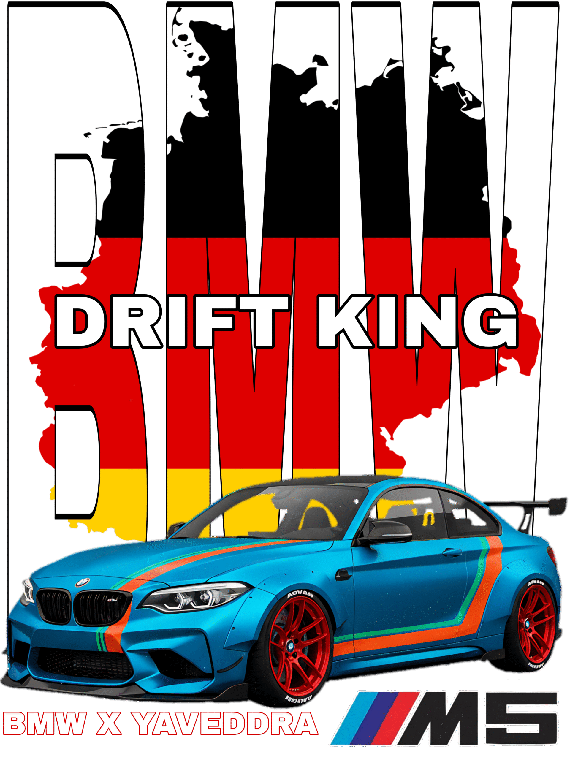 Made from high-quality heavyweight cotton fabric, this hoodie ensures ultimate comfort, durability, and warmth. The bold BMW M5 Drift King design, featuring a dynamic car graphic and German flag background, reflects pure power and sophistication — perfect for both car meets and casual streetwear styling.