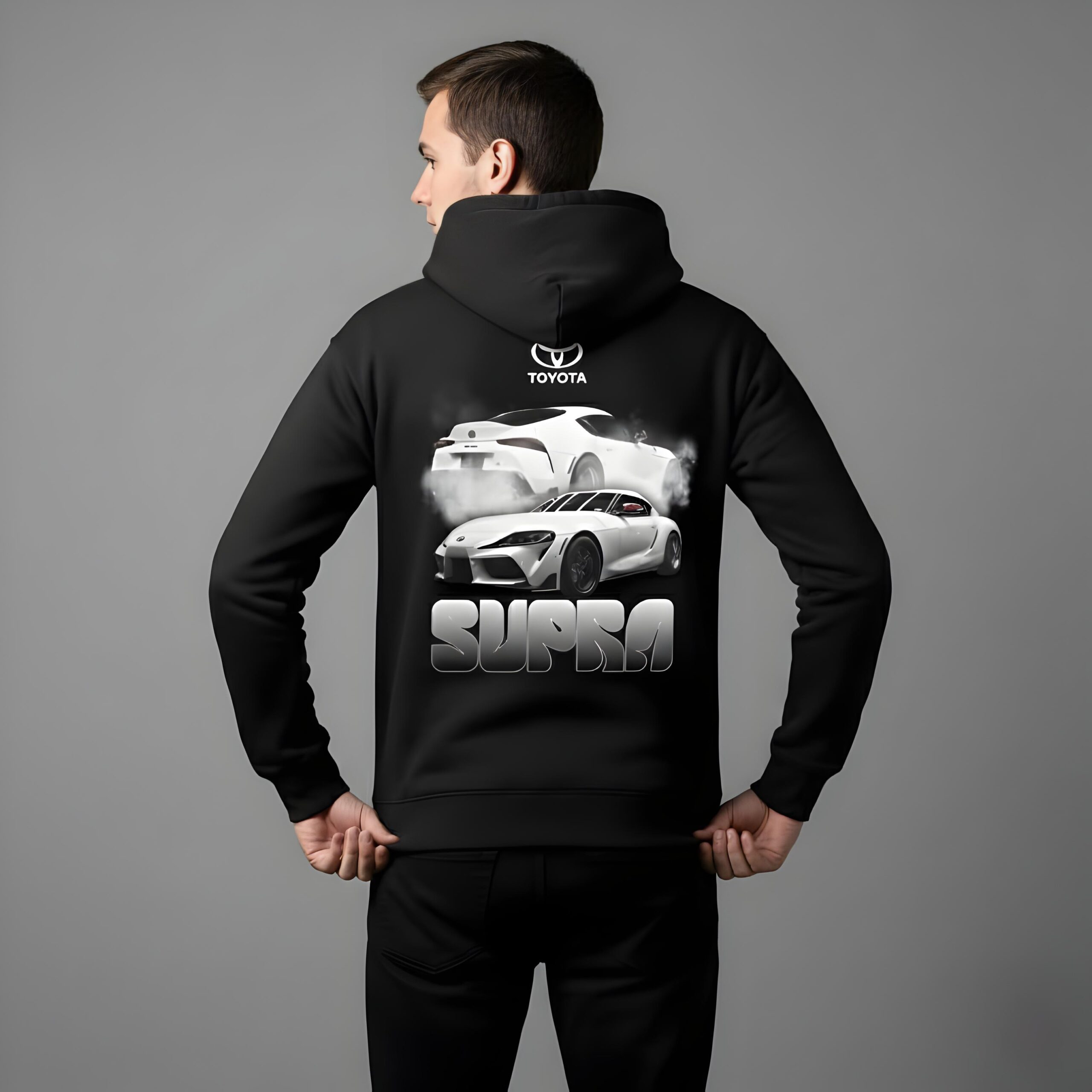 The highlight of this hoodie is the high-detail Toyota Supra MK5 graphic printed on the back. Known for its aggressive curves and unmistakable presence, the MK5 Supra has become one of the most iconic modern sports cars in the world. Yaveddra captures that spirit through a bold, crisp, and fade-resistant print that retains its sharpness after multiple washes. The artwork is presented in a stylish high-contrast design that instantly grabs attention without overwhelming the clean streetwear aesthetic.